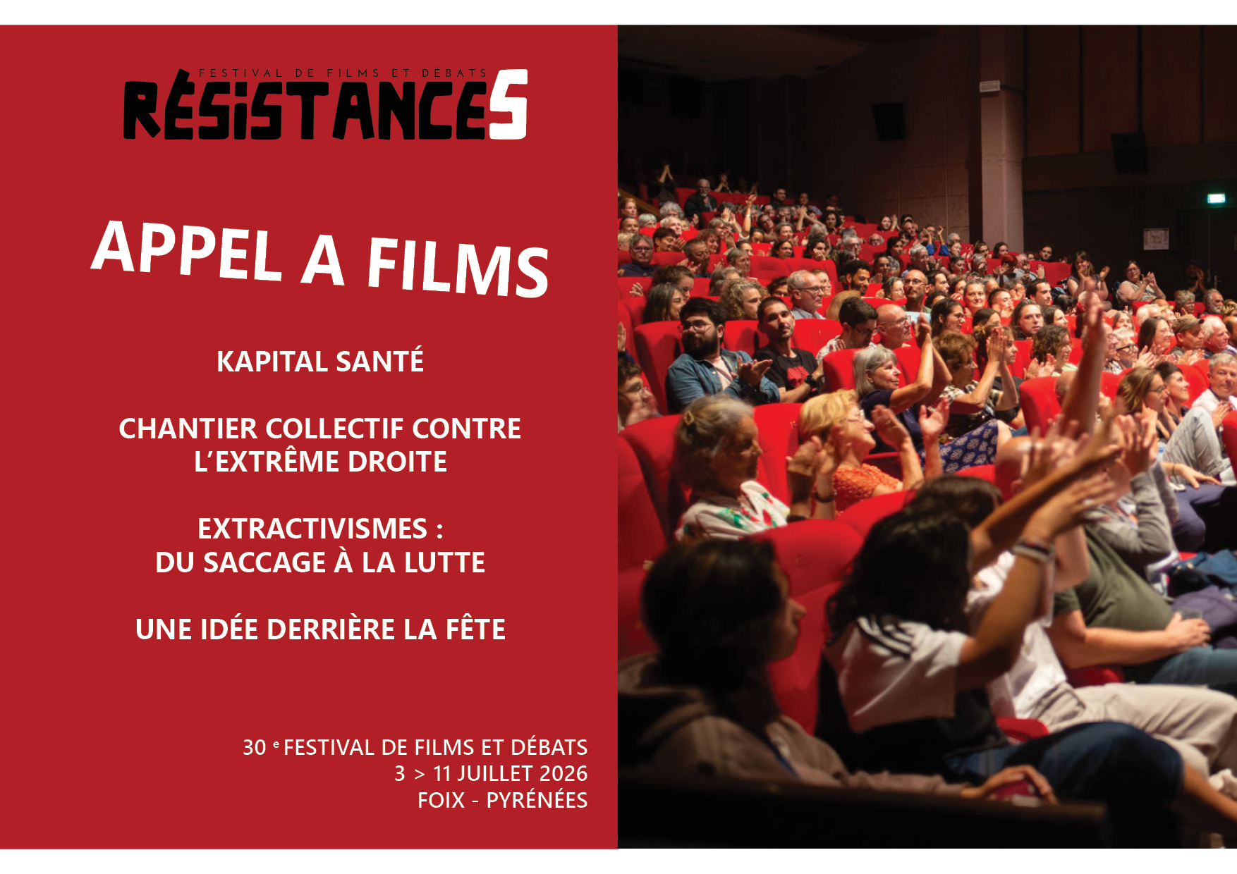 La 30e édition du festival de films et de débats Résistances aura lieu du 3 au 11 juillet 2026 autour des thématiques suivantes :